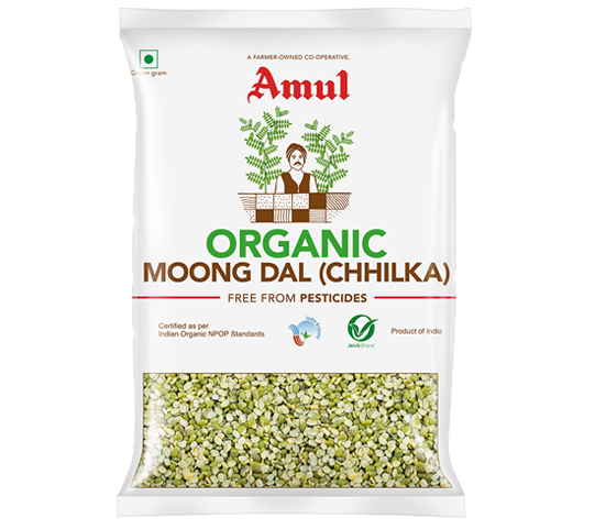 Whole Moong has Good protein content, Naturally cholesterol free and High fibre content. Moong is source of protein, carbohydrates, vitamin A, potassium and dietary fibre. The Amul Organic Whole Moong is free of harmful pesticides and has vacuum packaging which eliminates the risk of any kind of insect attack. Switch to organic today to start your Journey towards Healthier Tomorrow.